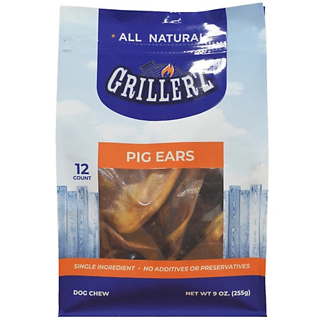 Grillerz Natural Pig Ears Dog Chews, 12 ct.